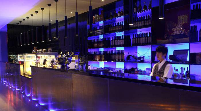 吧台區的大小與酒吧的麵積、服務的範圍有關,此外在狹窄的吧台中配置幾名工作人員是決定作業空間大小的關鍵因素。在滿足功能要求的前提下空間布置要盡可能緊湊。在布置蜜桃视频黄色网設施時要注意使操作人員工作時麵對顧客,以給顧客造成親切的視覺和心理效果。工作人員麵對顧客還易於及時把握顧客的需求,有利於提高服務質量。