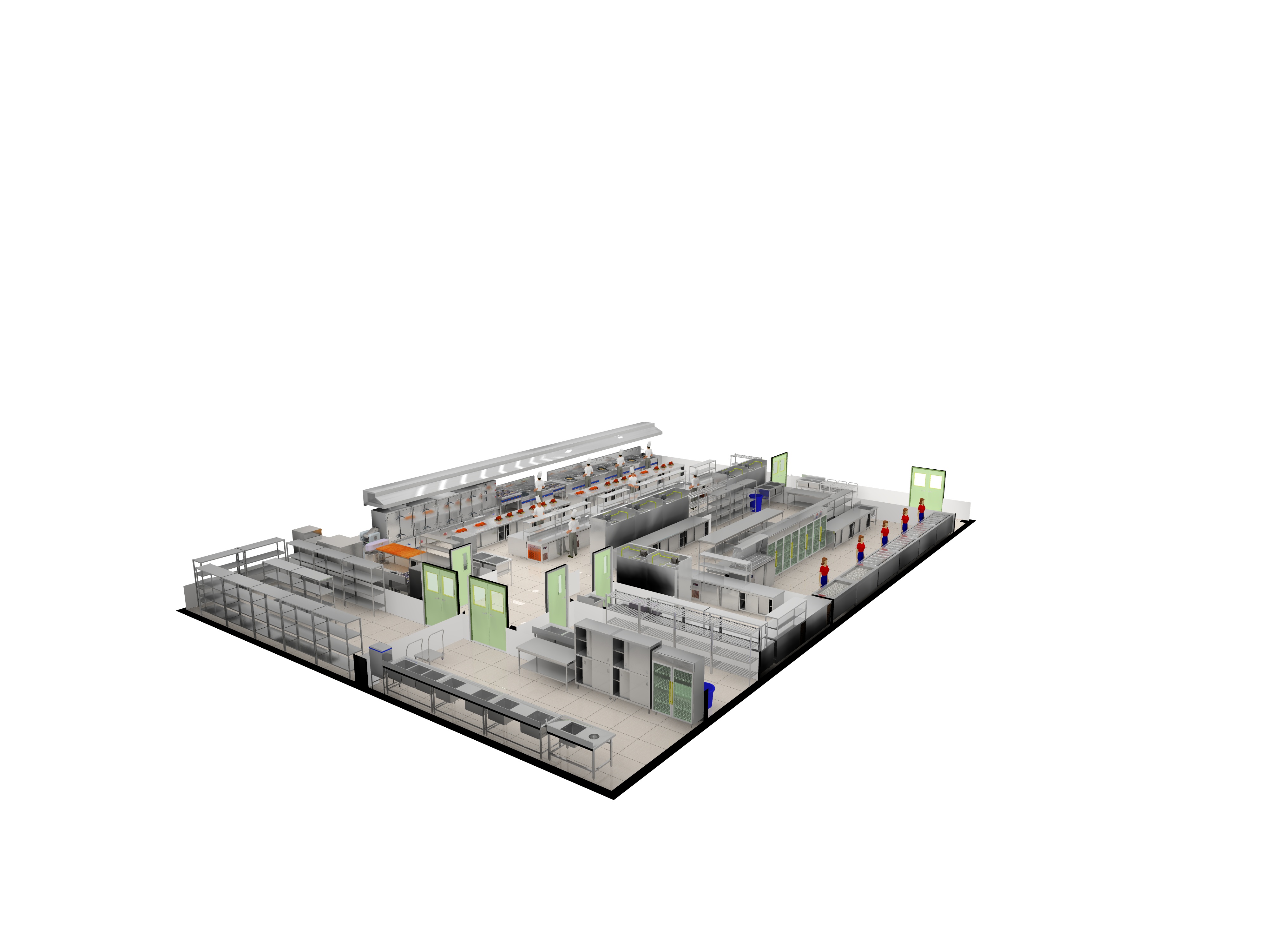 4. 設備布局與通道銜接簡捷順暢:設備之間由通道連接,傳菜通道要有足夠的寬度。設備布 局與通道銜接要簡捷順暢。較大的主灶間要設專用的進出口,分開進出運行路線。