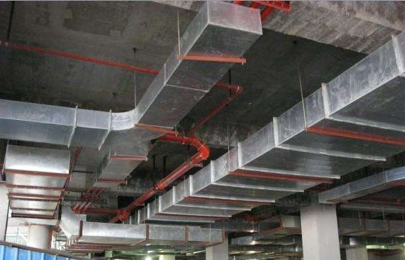 所以,室內一般不采用圓形管道,主要用於室外。同樣截麵積的矩形管越扁,使用板材越多,壓力損失越大,四角產生的渦流加大了壓力損失,是產生噪聲的主要原因。矩形管單麵麵積比較大,受到壓力容易變形,產生聲響,需要加厚板材和采用加強工藝。因此,在空間允許的情況下,盡量使矩形管四邊相等。