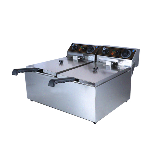 在這裏,順便介紹一下燃氣雙缸炸爐。燃氣雙缸炸爐與電力雙缸炸爐結構基本相同,不同之處是燃氣雙缸炸爐是使用脈衝點火,帶有熄火保護安全裝置,操作方便。燃氣炸爐主要使用燃氣管發熱,可以快速的升溫到所需要的溫度,高效率、高效能。