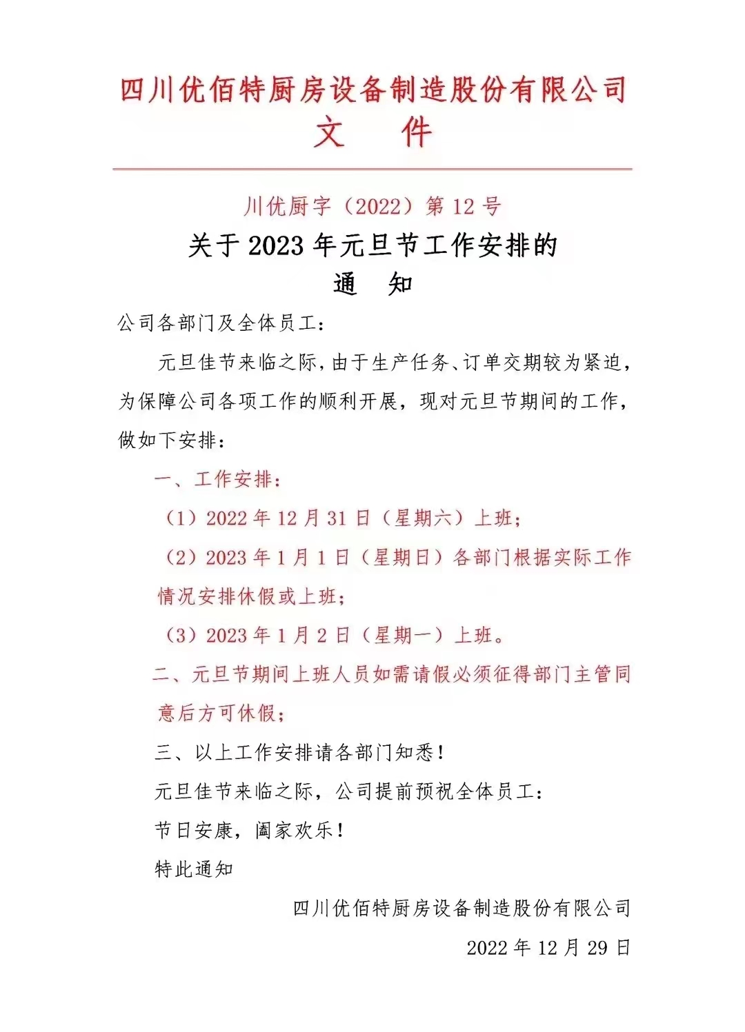 元旦放假通知
