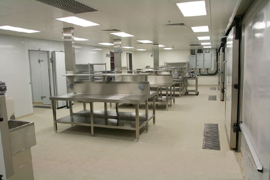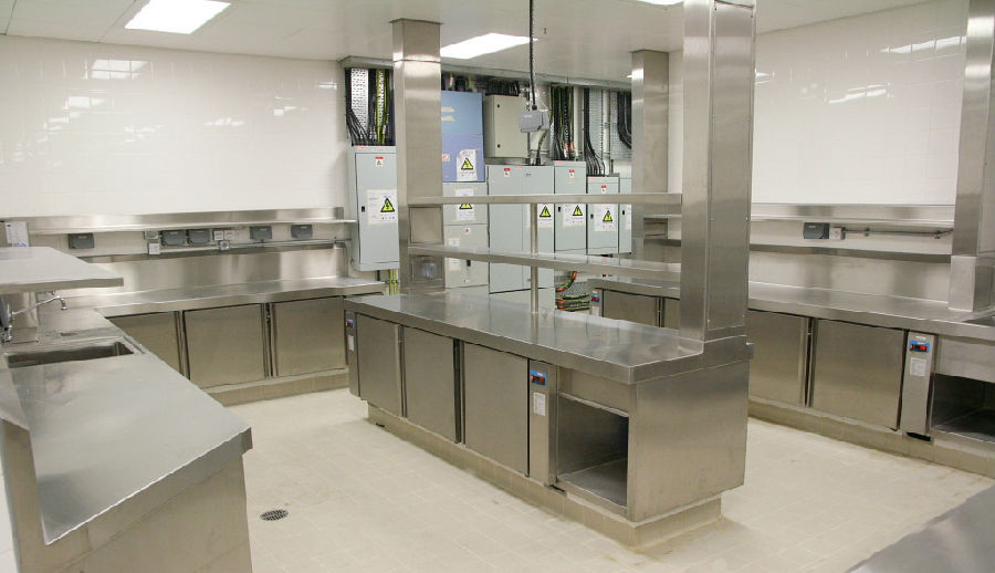 依然是一流的現場無縫焊接工藝,台麵非常平整,對土建(地台施工),現場焊接工藝,調理台的製造工藝要求非常高。工作台的背板用大弧度L型設計,避免藏汙納垢,容易清洗。