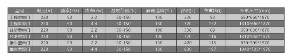 通過電熱管加熱產生熱能,利用風機將熱空氣在櫃內循環,使溫度不小於120℃,消毒工作時間大於 15 分鍾,以實現對餐飲具消毒的目的。殺滅微生物種類:可殺滅大腸杆菌、脊髓灰質炎病毒等病原微生物。