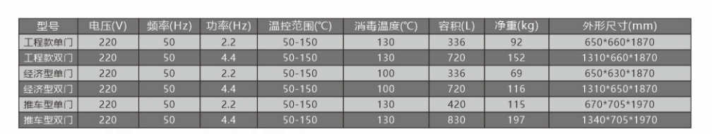 新款雙門消毒櫃是由電熱管、循環風機為主要元器件產生以高溫為消毒因子的食具消毒櫃。適用範圍:適用於餐飲具消毒。