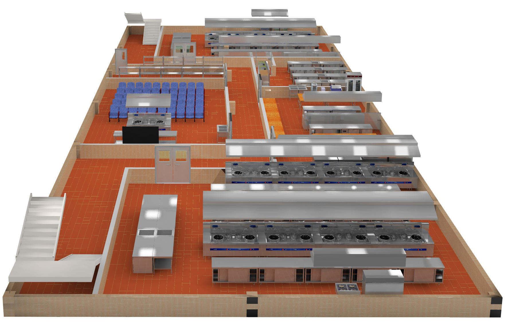 (3) 選定設計順序:一般按順序從一端向另一端開始設計,選定首先要設計的工作間。可以先從進貨口開始設計,也可以由出餐口向庫房逐次設計。